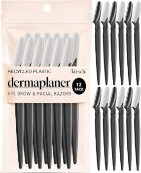 Kitsch Dermaplane Razor for Women Face Face Razors for Women & Men, Eyebrow Trimmer & Face Shaver Exfoliating Facial Razor & Skin Care Tool for Smoother Skin – Black, 12 pcs