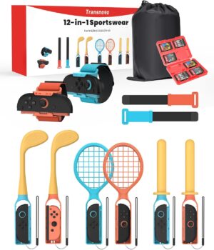 Complete Sports Accessories Bundle: This Switch accessories kit includes 2 golf clubs, 2 tennis rackets, 2 wrist/leg straps, 2 swords, 1 game card case and 1 storage drawstring bag. Perfectly designed for Nintendo Switch 2 sports games, it enhances your gaming experience with realistic motion controls and versatile gameplay options