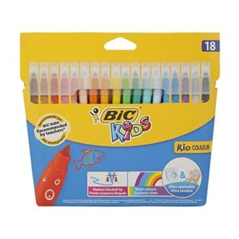BIC Kids Couleur Water-Based Felt Tip Pens, Cardboard Wallet (18)