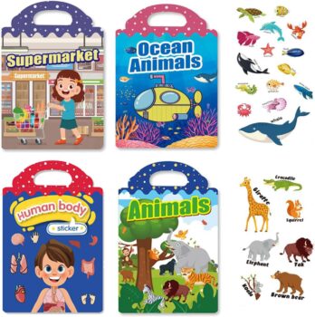 Boy Girl Birthday Gifts, Montessori Educational Toy, Reusable Sticker Busy Book, for Home, Travel, Preschool, and Sensory Learning