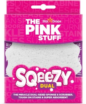 Make cleaning faster, easier, and more effective with the Pink Stuff SQeeZY Miracle Dual Sided Scrubber Sponge. The versatile, two-in-one cleaning tool designed to handle everything from light wipe downs to stubborn messes. Featuring a dual-sided design, this innovative sponge gives you the best of both worlds: a soft, absorbent sponge side for everyday cleaning and a textured scrubbing side for tougher tasks around the home. Perfect for kitchens, bathrooms, and outdoor areas, the sponge adapts