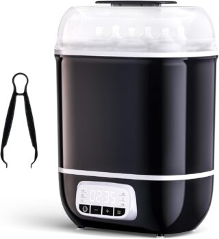 5 IN 1 MULTIFUNCTIONAL STERILISER: Offering sterilization, drying, milk heating, warming, and food dehydration, this bottle steriliser perfectly caters to all your diverse needs for baby bottles and more