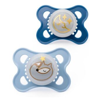 MAM Night Soothers 0-6m, 2 Pack, Glow, Steriliser Case, Blue