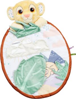 Embark on a Sensory Safari Discover a captivating realm where touch and sight blend seamlessly on this ultra-soft playmat. The rich tapestry of textures, from the crinkle-sound leaf to the peek-a-boo flap, entices little fingers to explore. Complete with a sun mirror for reflective play, this is where the joys of discovery meet the magic of the savannah. Engage with Endearing Characters Sleeping Simba and Nala nestle among vibrant hues, inviting interactive play and providing a feast for develop