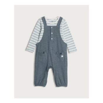 F&F Baby 2-Piece Stripe Print Bodysuit & Dungarees Set in Grey (0 – 3 Months)