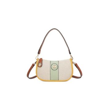 Fontanella Fashion Apiary Bee Badge Canvas PU Leather Top Handle Shoulder Bag