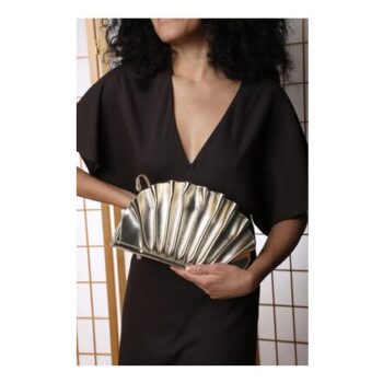 Gold Wheres That from Mist Metallic Shell Clutch Bag