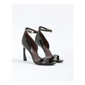 River Island Womens Sandals Black Patent Closed Back Banana Heel