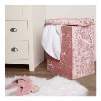 OHS Crushed Velvet Foldable Laundry Basket Blush