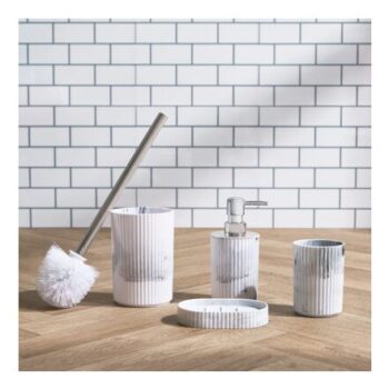 OHS 4-Piece Marble Ribbed Bathroom Accessories Set – Grey/White