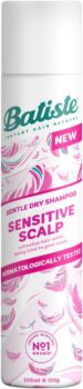 A dry shampoo kind to your sensitive scalp Look no further than Batiste Sensitive Scalp Dry Shampoo With our smallest ingredient list ever, this lightweight and lightly scented formula, infused with Aloe Vera, is developed for sensitive scalp and has been dermatologically tested. It gently absorbs excess oil and neutralises odour, leaving your scalp feeling fresh while your hair looks instantly cleaner. Now sensitive scalps can enjoy revived hair with long-lasting freshness between washes. Inv