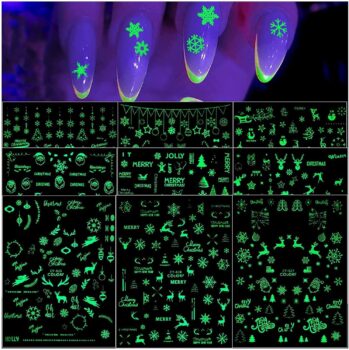 Luminous Nail Art Stickers Set – You will receive 9 Sheets luminous nail stickers. After the nail is irradiated by the light, after absorbing the light energy,