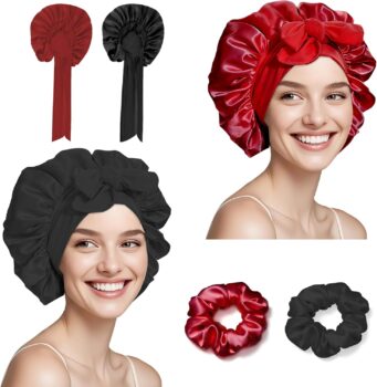 Wide adjustable waistband: satin hair cap with 2 elastic bands combines style and functionality. Simply pull over the head, adjust the fit and tie – so sleep cap silk securely in place all night. It prevents