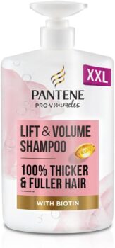 Pantene LiftNVolume Thickening Shampoo with Biotin, Silicone Free, 1000ml XL Pump. Pro V Miracles Shampoo Enriched with Antioxidants. Visibly Fuller Hair