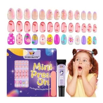 TOROKOM Kids Press-on Nails Kit, 78 Pieces with Builder Glue