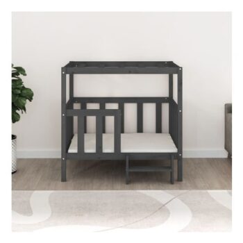 Beautiful Dog Bed Grey 105.5 X 83.5 X 100 Cm Solid Wood Pine