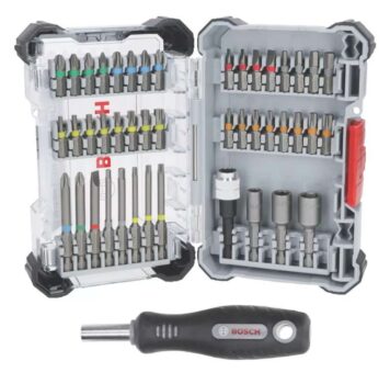 Half price on Bosch 1/4 Hex Shank Mixed Extra Hard Screwdriver Bits 44 Piece Set, £14.99.