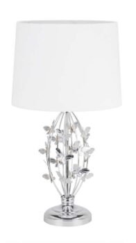 This delightful and beautiful Chrome Butterfly Table Lamp will bring an enchanting element to your home decor. With gorgeous butterflies delicately placed across the smoothly curving chrome base, paired with a classic light grey shade, his table lamp will create a charming ambiance in any room of your home. Perfect for a feminine bedroom or conservatory, the Chrome Butterfly Table Lamp will wonderfully complement botanicals in your decor and bring elegance to both modern and vintage style homes.