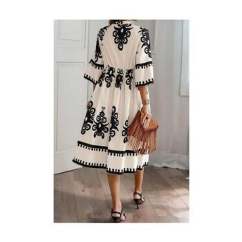 Everyday the Label Beige Western Geometric Print 3/4 Sleeve Loose Midi Dress