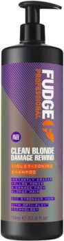 Fudge Professional Clean Blonde Damage Rewind Shampoo, Bulk Size, Intense Purple Toning for Blonde hair, Bond Repair Technology, Sulfate Free, 1 Litre