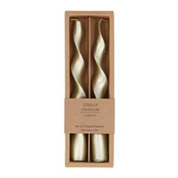 Gisela Graham Set of 2 Gold Vintage Twister Taper Candles