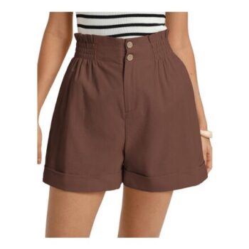 Grace Karin Lightweight Travel Shorts with Coconut Buttons Brown XL