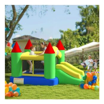 Green HOMCOM Bouncy Castle with Slide