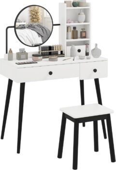 MULTI-STORAGE: Dressing table comes with two drawers on the dresser, narrow side shelves with drawer and a flat top – plenty of room to keep make-up, perfumes, hair kit and more together for when you get ready.