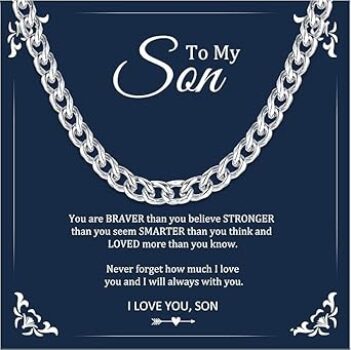 Mens Gifts To My Son Chain Necklace – Son Gifts from Mum Dad Silver Chain Mens Cuban Chain Happy Birthday Graduation Gifts for Son Jewellery Presents from Mother Father I Love You Gifts for Him