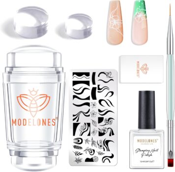 Comprehensive French Nail Stamper Kit: Included 7 pcs nail art stamper kit, 1 x double head nail stamper, 1 x Nail Art Stamping Plates, 1 x nail art pen, 1 x transfer oil, 2 x replacement jelly nail stamper head, 1 x nail scraper, a complete set of manicure tools. Let Modelones All-in-one silicone stamper nails french tip kit brings you a more pleasurable manicure experience.