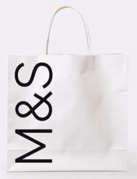 So, we are taking the latest innovation in M&S Food which moved our popular rice and grains packaging to paper bags and boxes, removing 5.5 million units of plastic, and applying it to our carrier bags. From today every store across the UK will offer Forest Stewardship Council (FSC) certified paper bags at checkouts. The bags are replacing our ecoloop plastic bags for life and sold alongside our range of durable tote bags, and we are introducing a strong, robust bag in Food and a simpler one in Clothing & Home reflecting our different shopping missions.