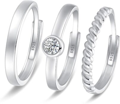 MUCCA 3pcs Sterling Silver Rings Set for Women Adjustable Cubic Zirconia Stackable Price and promotions are accurate at the time of posting but can change or expire at anytime
