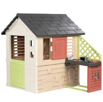 With a modern design, the Smoby Life Nature Play House with Kitchen has perfect play features for summer, including a half-door, shuttered windows and an outdoor kitchen with 17 play accessories