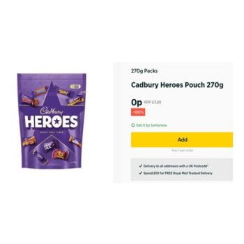 Cadbury Heroes Pouch 270g- Costs Nothing. 1 per Customer (RRP £7.29)