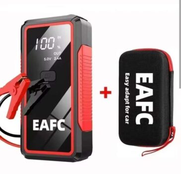 The EAFC 12V Car Jump Starter delivers fast, reliable engine starts with peak currents ranging from 600A to 2000A, making it suitable for most petrol and diesel vehicles. Designed as an allinone emergency tool, it combines a highcapacity power bank with smart jumpstart protection, guarding against reverse polarity, short circuits, overcurrent, and overcharging. Its compact, rugged body makes it easy to store in the glovebox, while the builtin LED flashlight offers steady, strobe, and SOS modes for roadside emergencies. USB outputs allow you to charge phones, tablets, and accessories on the go, turning it into a versatile backup power source. Whether dealing with coldweather battery failures, longterm parking, or unexpected breakdowns, this portable booster provides dependable performance and peace of mind. Ideal for drivers who want a lightweight, affordable, and essential emergency companion.