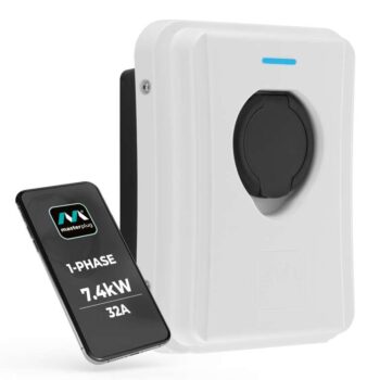 Masterplug Smart EV Home Wall Charger for Type 2 Electric and Plug-In Hybrid Vehicles, Socketed, Mode 3, Auto-Lock, Solar Charging, Single Phase, Wi-Fi, White, IP65, 7.4kW, 32A, EVCM3SS7W-MP