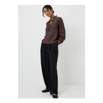 Chocolate Brown Textured High Neck Blouse
