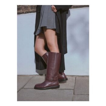Burgundy Red Leather Forever Comfort Buckle Detail Rider Boots