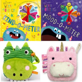 Worry Monster Kind-O-Meter / Mood-o-Meter Story Book / Sensory Snuggables Dinosaur / Unicorn Hand Puppet Book. Free C&C