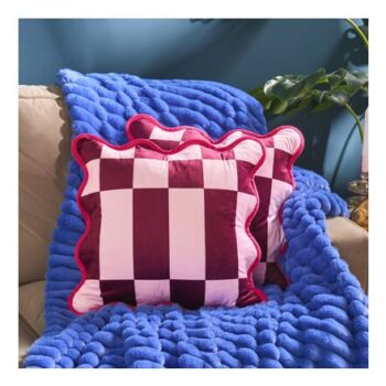 OHS Burgundy/Pink Velvet Check Scallop Edge 2 Pack Cushion Covers, 4 Pack £8