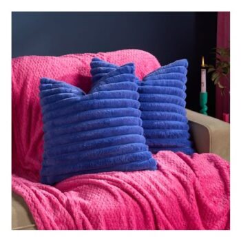 OHS Faux Fur Thick Ribbed Cushion Covers – Cobalt Blue