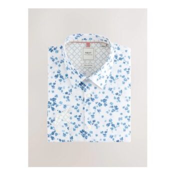 White/Blue Watercolour Ditsy Floral Slim Fit 100% Cotton Long Sleeve Single Cuff
