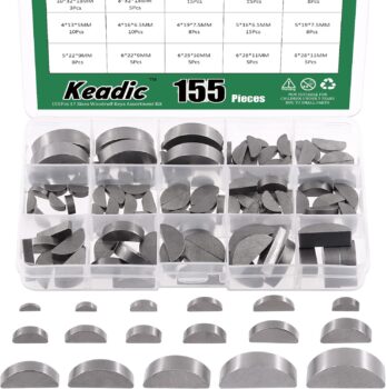 Keadic 155Pcs 17 Sizes Woodruff Key Assortment Set, Carbon Steel Half Moon Gear Shaft Drive Semicircle Bond Key Pulley Crank Hardware Accessories for Mechanical Industry Fasteners