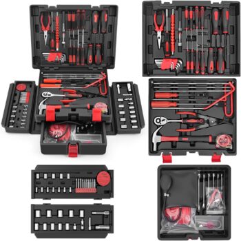 Sundpey 132-PCs Car Tool Kit – General Basic Portable Home and Automotive Repair Tool Set with Drawer for Men Women with Pickup & Hook & Fastener & Valve Stem Removal Tools for Car RV Truck Motorcycle