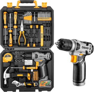 LIGHTWEIGHT CORDLESS DRILLThe 8V drill set can be used for drilling in wood and plastic, and tightening/loosening screws.Press the switch to adjust the speed of the electric drill, the maximum no-load speed of the mini drill is 800r/min. With a net weight of only 1.65 lbs, the drill can be operated with one hand