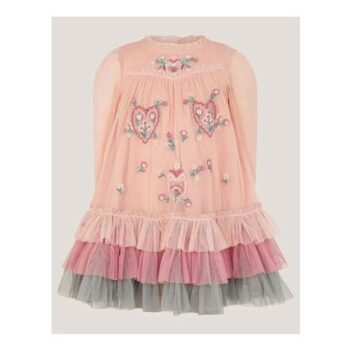 Baby Floral Embroidered Tulle Tiered Dress Pink