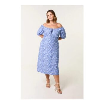 Bright Blue Vanilla Curve Milkmaid Stretch Crepe Midi Dress