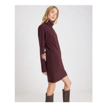 Brown Cosy Long Sleeve High Neck Mini Dress