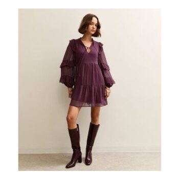 Burgundy Ruffle Trim Chiffon Tiered Mini Dress (Only Size 20)
