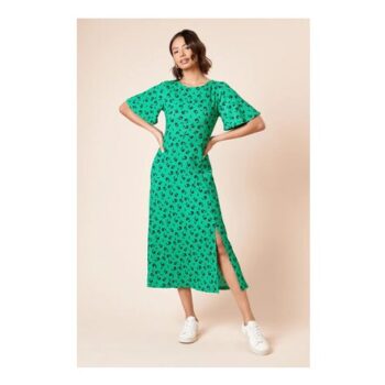 Dorothy Perkins Green Floral Angel Sleeve Jersey Midi Dress